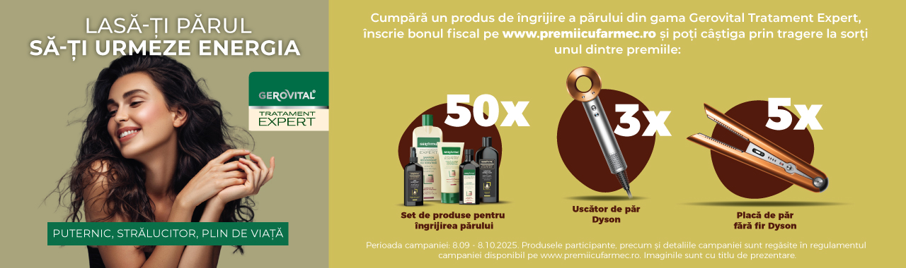 Campanie valabilă în toate magazinele fizice care comercializează produse de îngrijire a părului din gama Gerovital Tratament Expert